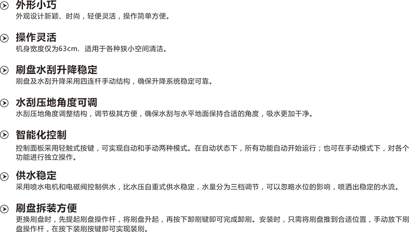 適用范圍:外觀設(shè)計(jì)新穎,結(jié)構(gòu)小巧,操作靈活,集便利與效率于一身,在滿足清潔工作需要的同時(shí),減少噪音污染,廣泛適用于各種中小區(qū)域地面的清潔。
