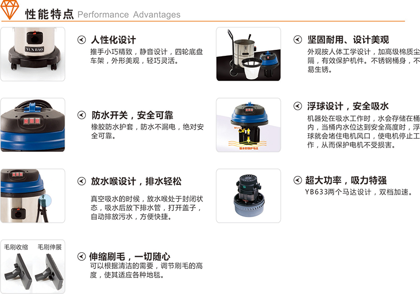 適用范圍:采用輕巧的不銹鋼桶身設(shè)計(jì),真空吸力超強(qiáng),專為相對干凈的區(qū)域吸塵吸水作業(yè)而設(shè)計(jì),適用于賓館酒店、工廠、商店和醫(yī)院等環(huán)境的清潔工作。