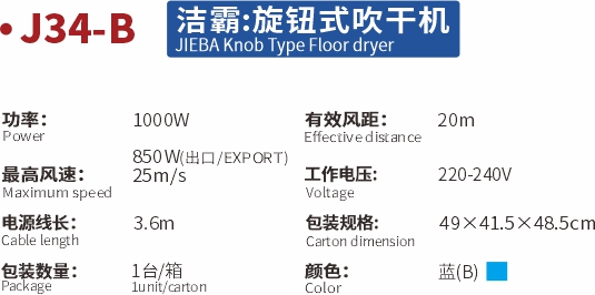 風(fēng)力強勁,噪音低,適用酒店、工廠、倉庫及各類潮濕場所。